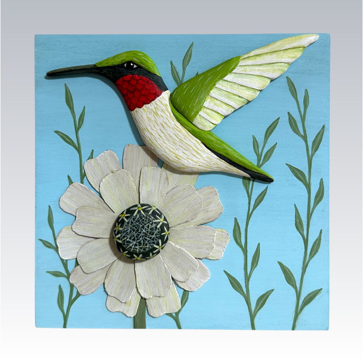 Published September 8, 2025 at 1472 × 1472 in Hummingbird and White Zinnia.